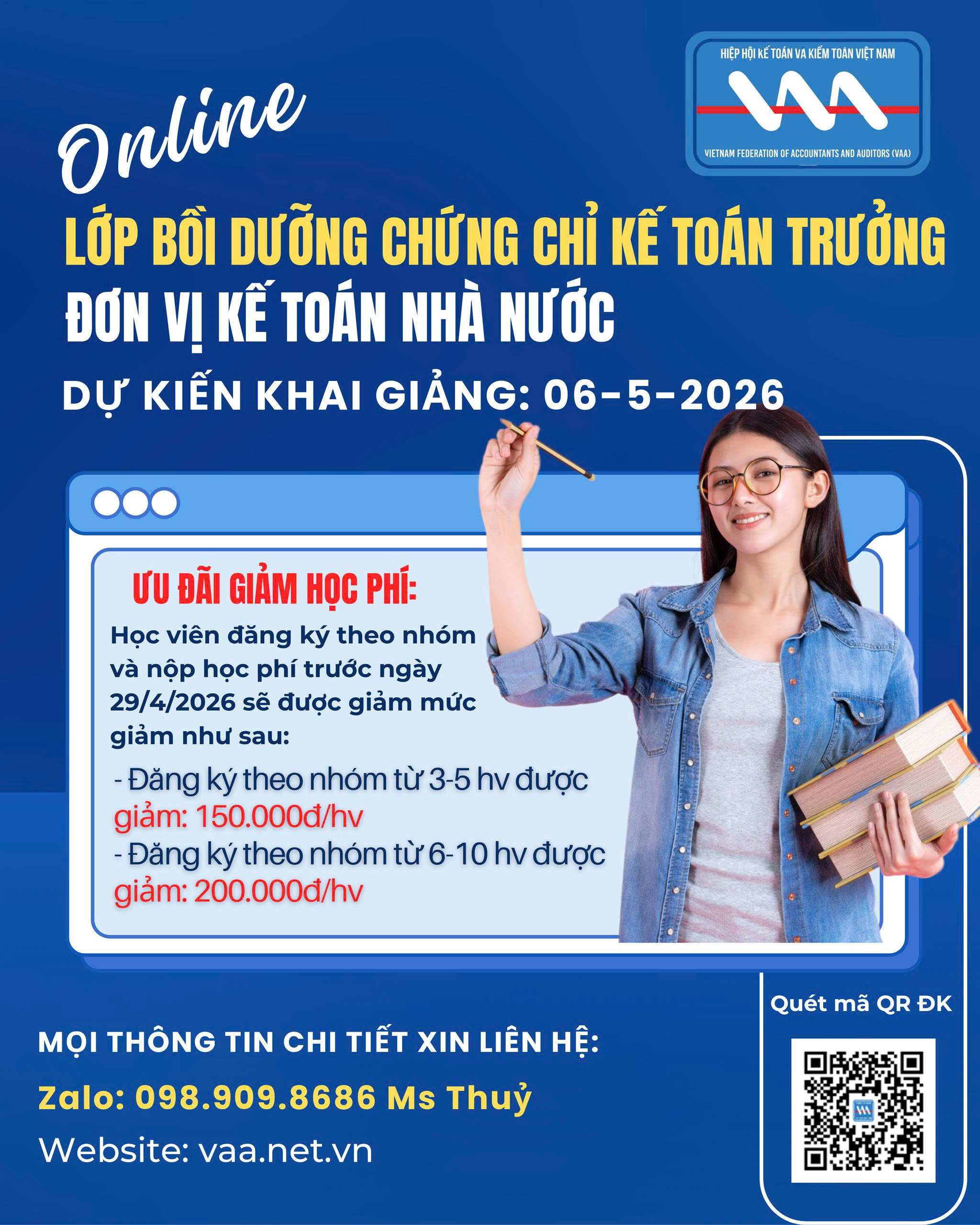 – Dự kiến khai giảng ngày 06/5/2026 (học vào các buổi tối trong tuần)